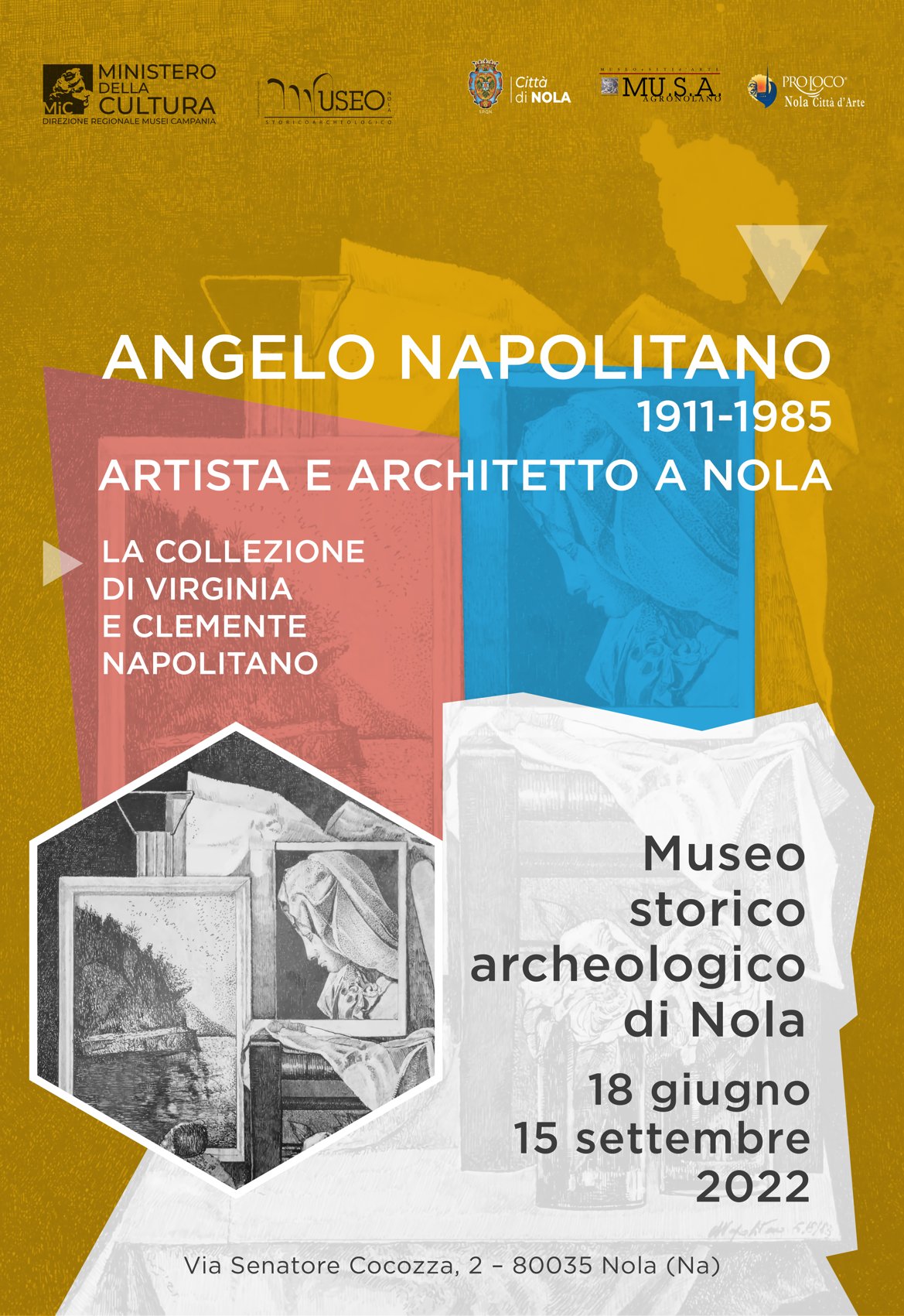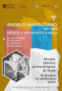 Sabato 18 giugno 2022 alle 18.00 al Museo storico archeologico di Nola sarà inaugurata la mostra Angelo Napolitano (1911-1985) Artista e Architetto a Nola. La collezione di Virginia e Clemente Napolitano, organizzata dalla Direzione regionale Musei Campania con il Museo storico archeologico di Nola insieme alla famiglia dell’artista, in collaborazione con l’Associazione MUSA e la Pro Loco città di Nola. L’evento è inserito nel programma delle manifestazioni del Giugno Nolano 2022 del Comune di Nola.