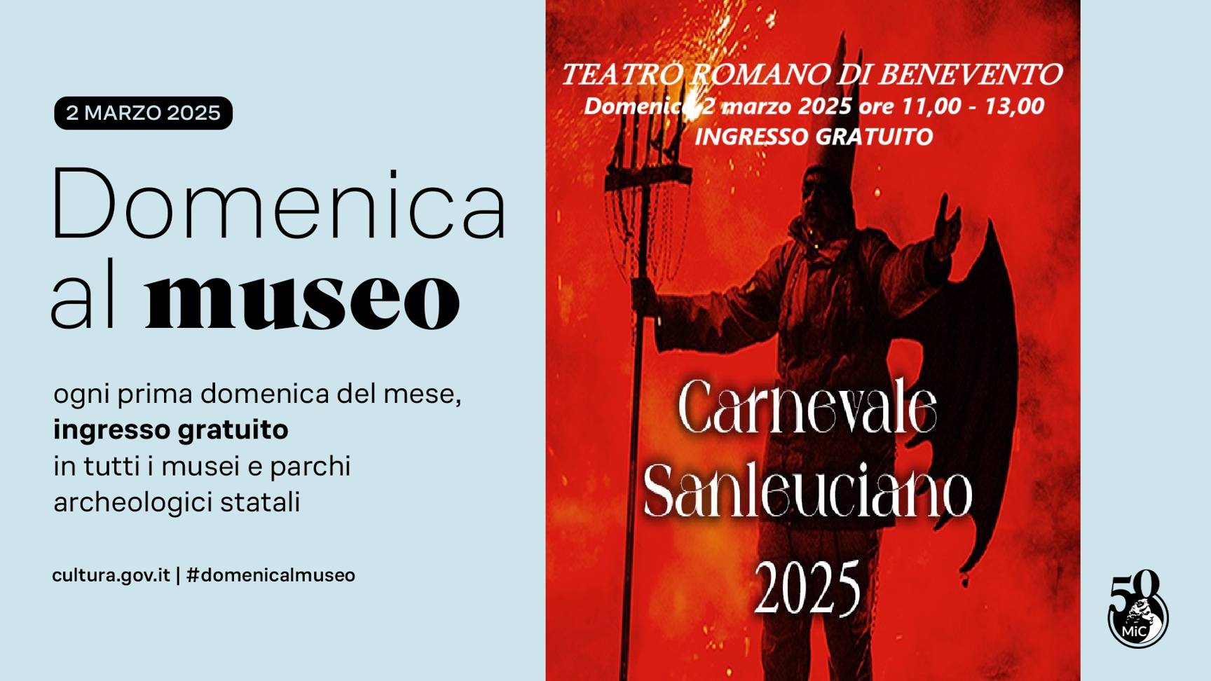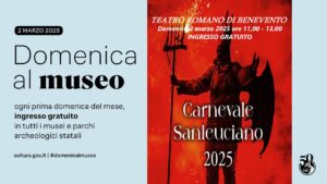 Domenica 2 marzo cittadini e turisti potranno visitare il Teatro Romano di Benevento gratuitamente e, in occasione del Carnevale, l’Area Archeologica del Teatro Romano di Benevento in collaborazione con il Comune di San Leucio del Sannio, l’Associazione aps “i Bamboccioni” e la Pro Loco ‘Casali dei Collinari’, organizza l’evento carnevalesco Mascarata Sanleuciana.