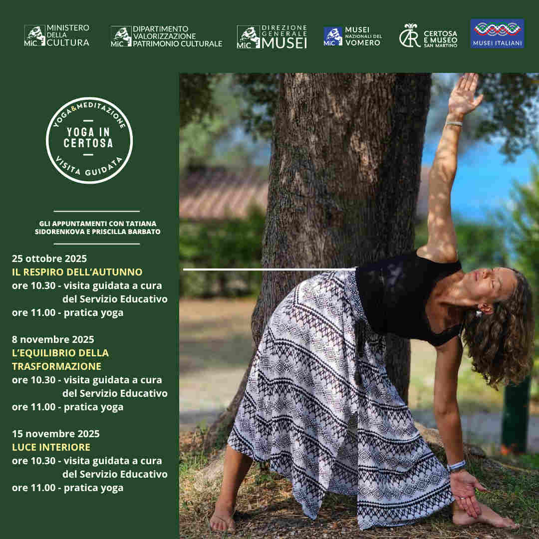 Sabato 25 ottobre alla Certosa di San Martino si rinnova l’appuntamento con il ciclo di incontri “Yoga in Certosa”, progetto ideato e realizzato in collaborazione tra i Musei Nazionali del Vomero e l’insegnante yoga Tatyana Sidorenkova, con la partecipazione di Priscilla Barbato.